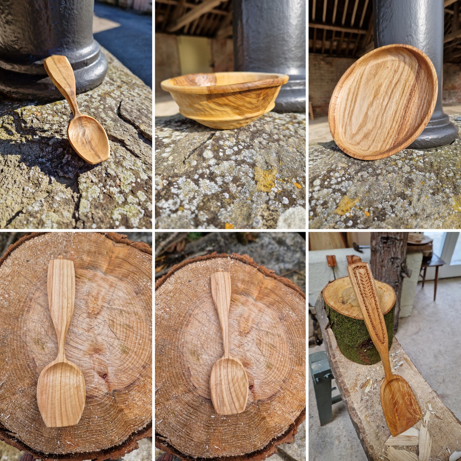 Hand-crafted spoons,bowls and other wooden items, in-person workshops and events.