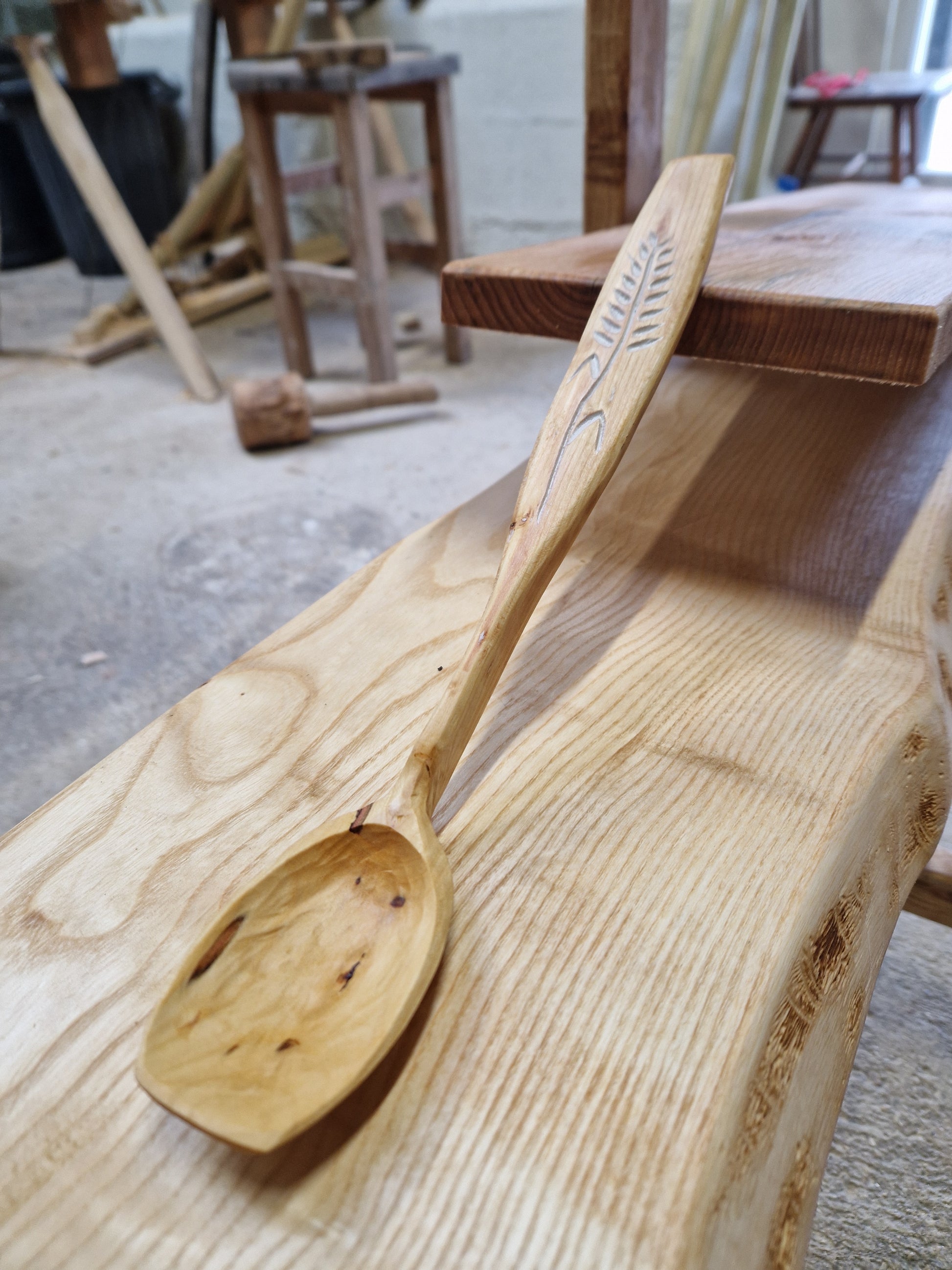 Lovely ladle hand carved from Damson wood with a carved corn design highlighted with white milk paint and finished with linseed oil. Perfect for serving soups, stews and sauces.
